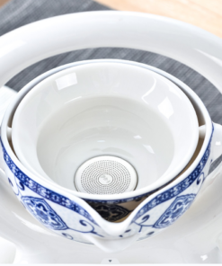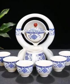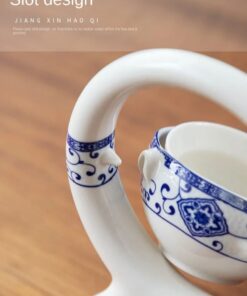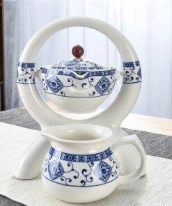 Elegant White & Blue Ceramic Tea Set – Automatic Pouring Tea