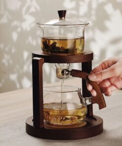 Magnetic Semi-Automatic Glass Tea Maker with Wooden Stand