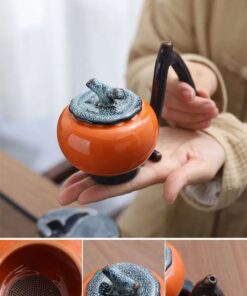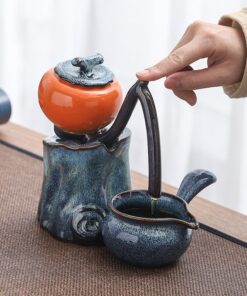 Tomato Teapot Tree Trunk Base Ceramic Tea Set – Whimsical Lazy Kungfu Tea Maker